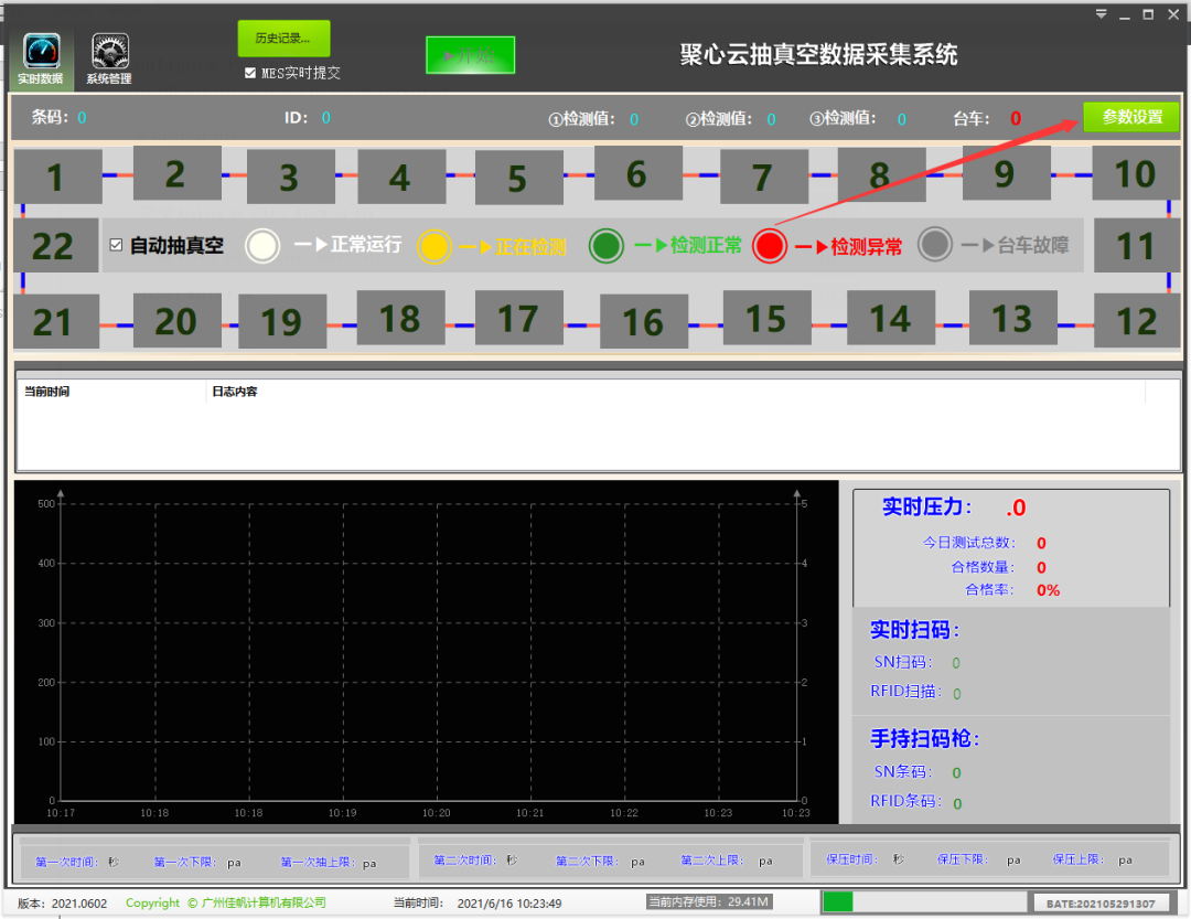 在生產過程中,聚芯云抽真空數據采集控制系統實時采集壓力參數,生成曲線變化顯示圖;生產數據實時化的同時,可通過人性化交互界面進行數據監控,后續同步云端完成數據記錄與分析處理,實現不良品的自動排出。